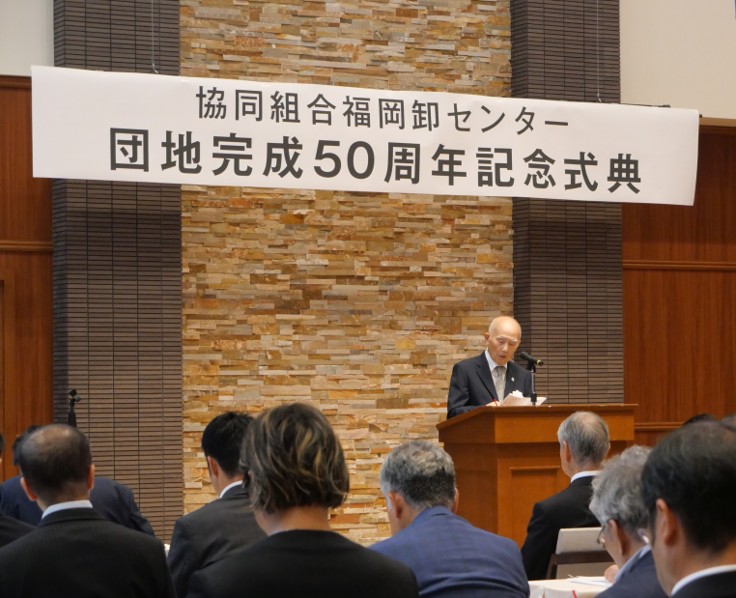 協同組合福岡卸センターでは、令和7年10月16日(木)、ザ・ロイヤルクラシック福岡にて「団地完成50周年記念式典」を盛大に開催しました。